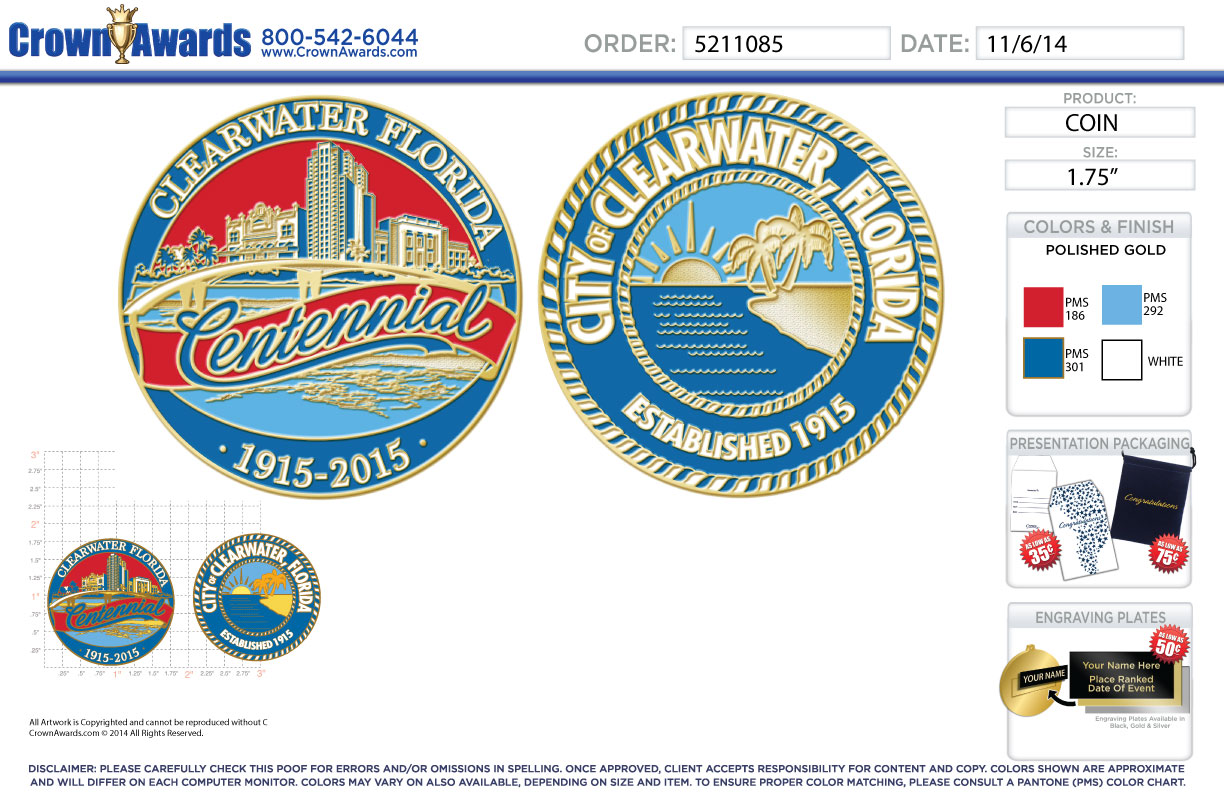 The Centennial Committee would like to order commemorative coins for Councilmembers, the City Manager, Assistant City Managers, and City Attorney to give out as commemorative tokens for the Centennial.