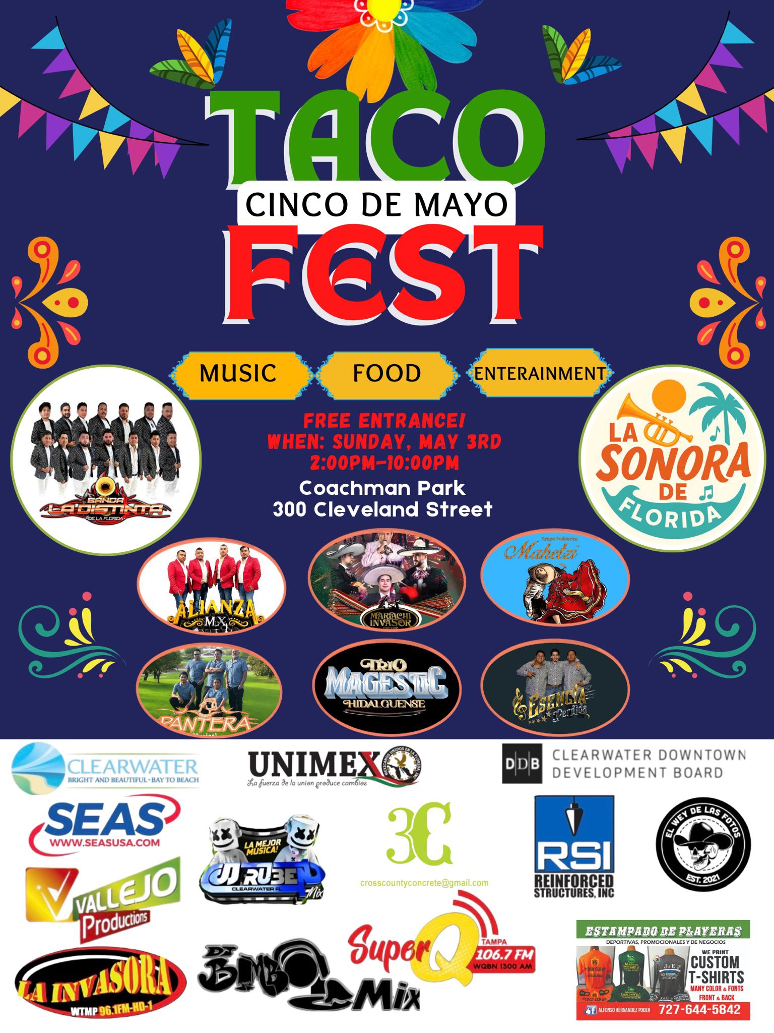Cinco De Mayo Taco Fest is a family-friendly cultural celebration designed to activate downtown Clearwater through live entertainment, food vendors, and interactive programming.